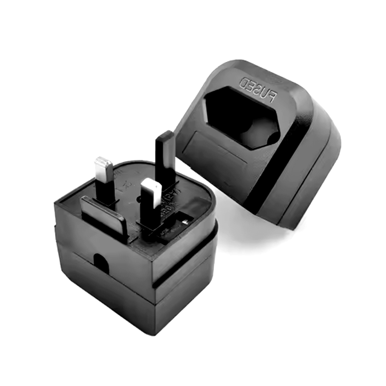 EU 2 Pin to UK 3 Pin Plug Adapter Black Converter with 3A Fuse