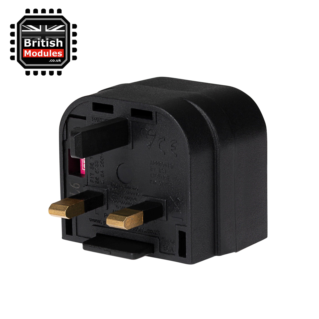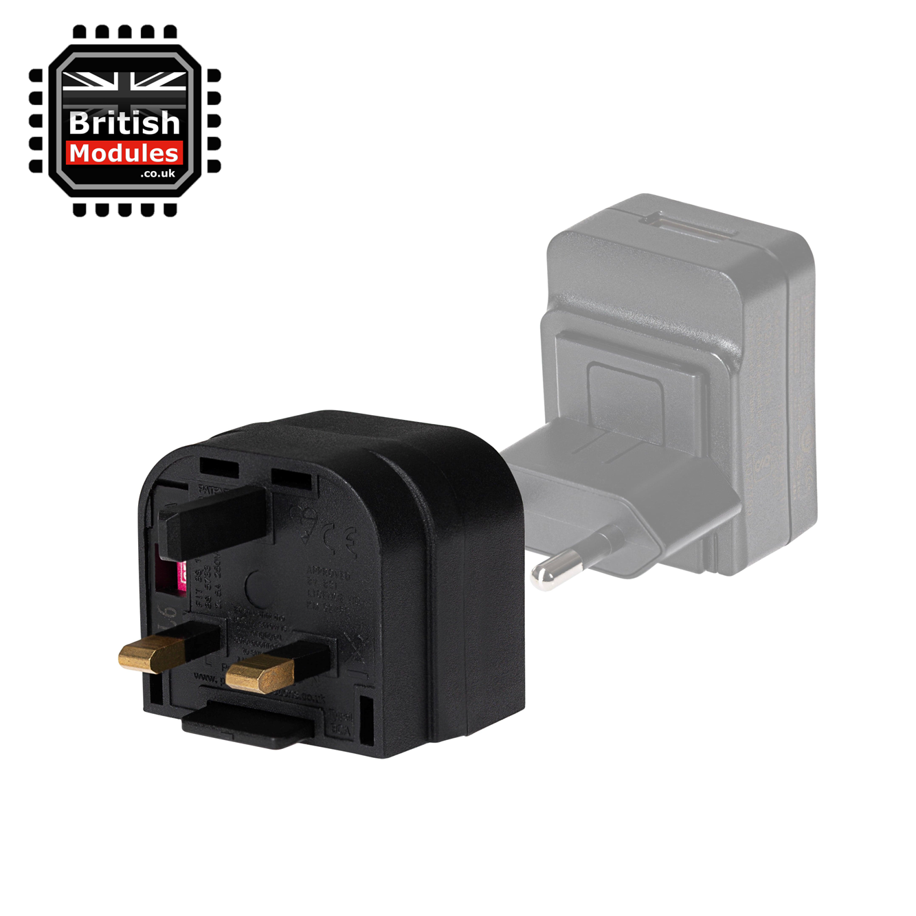 Converts EU plugs to UK sockets – great for travellers or imported electronics