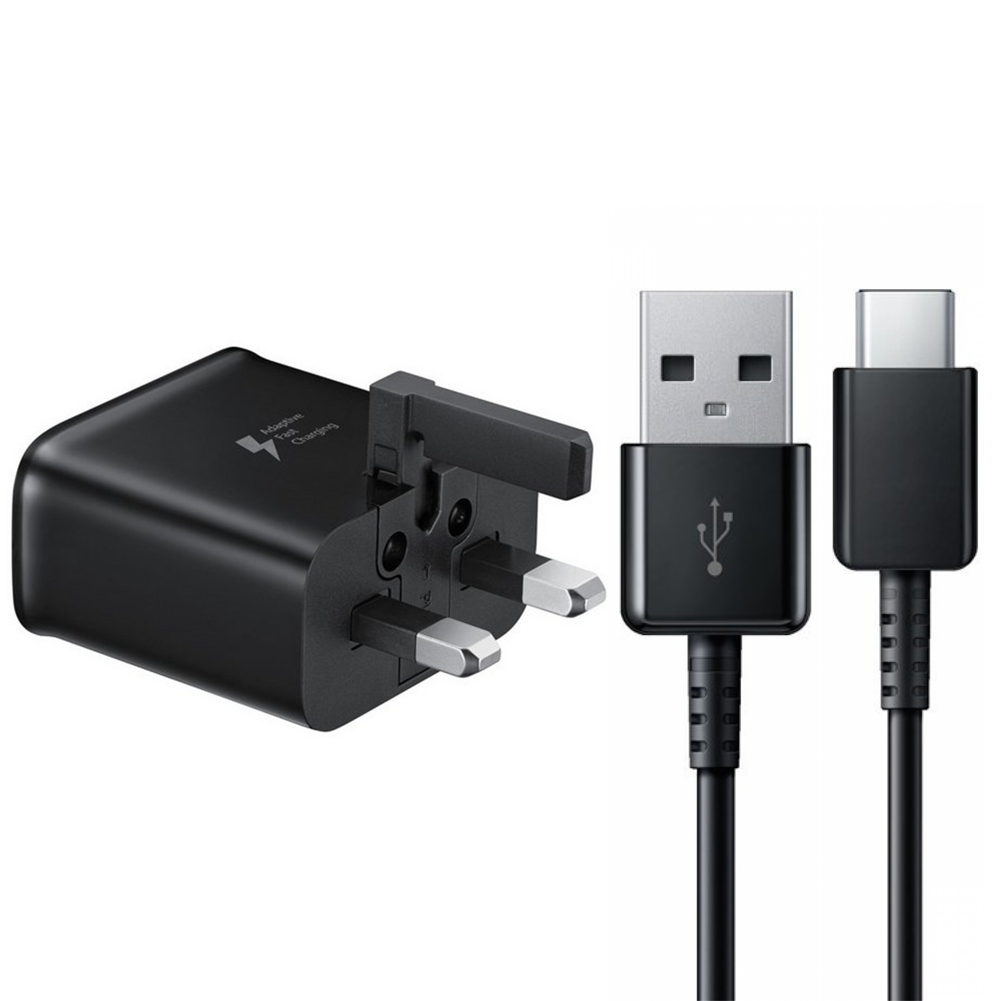 Genuine Samsung Galaxy S8 S9 Plus S10 Fast Adaptive Charger Mains Plug and USB Type C Charge & Sync Cable