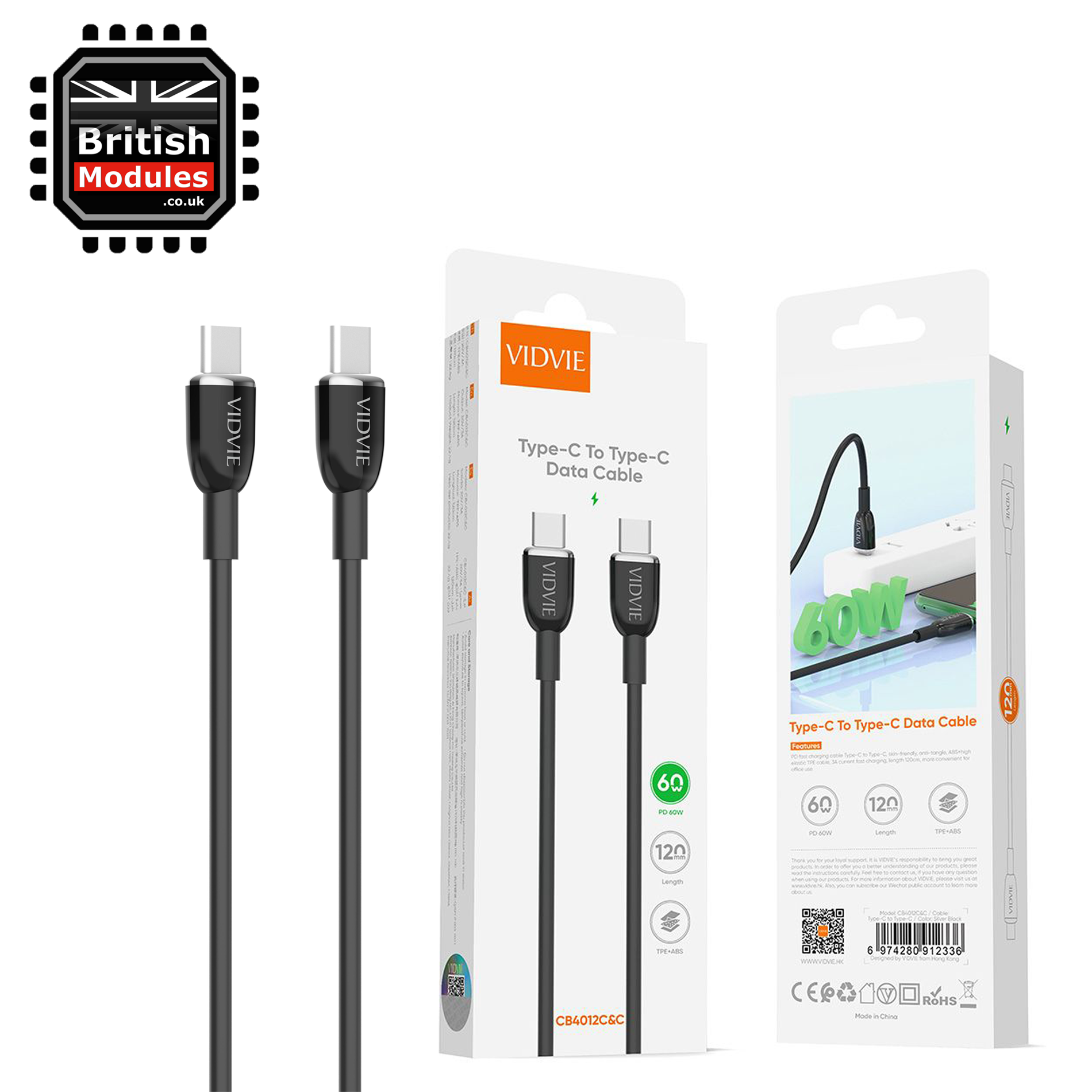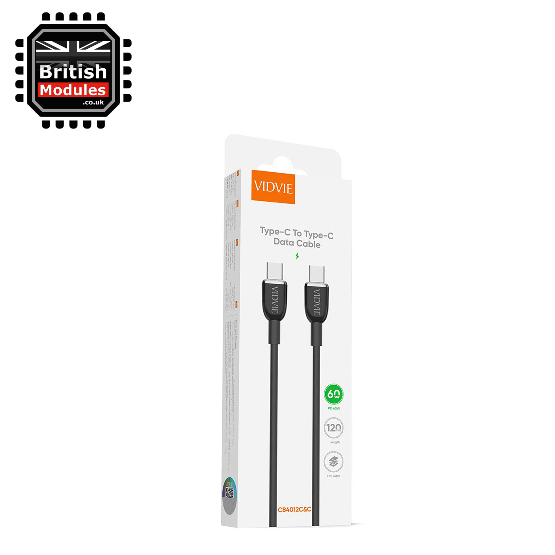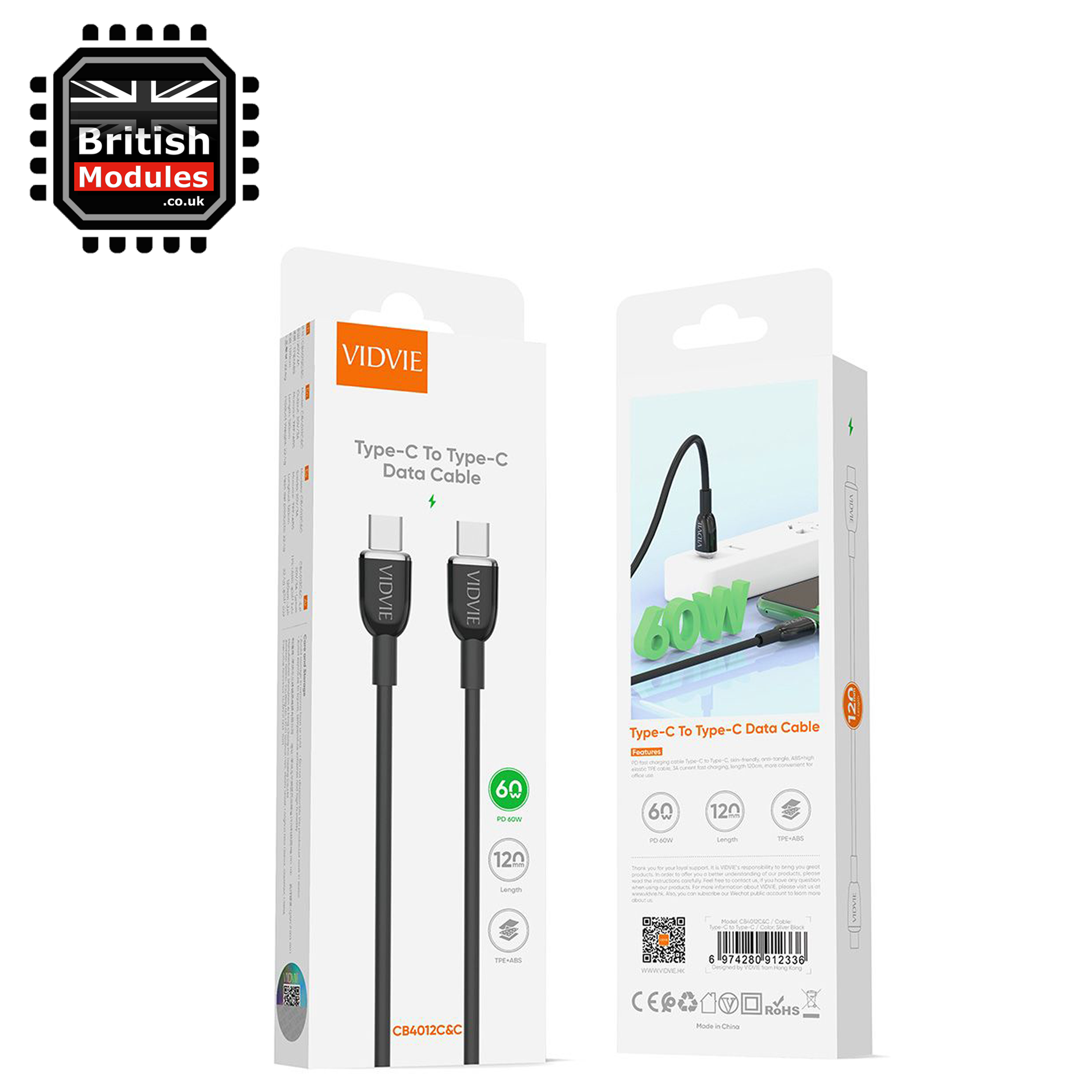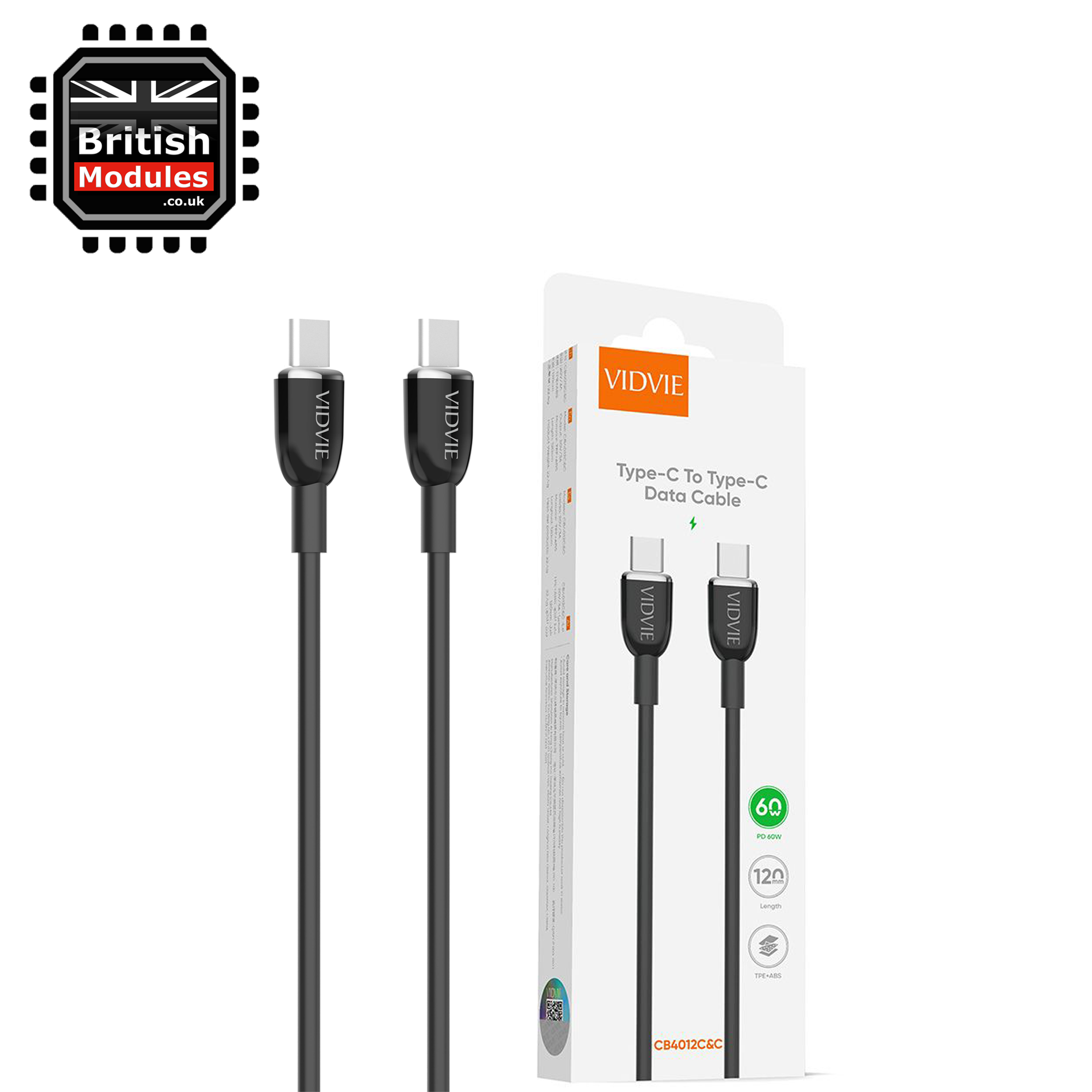 VidVie USB C to USB C Charge Cable Sync 60W Type-C to Type C CB4012C&C Black
