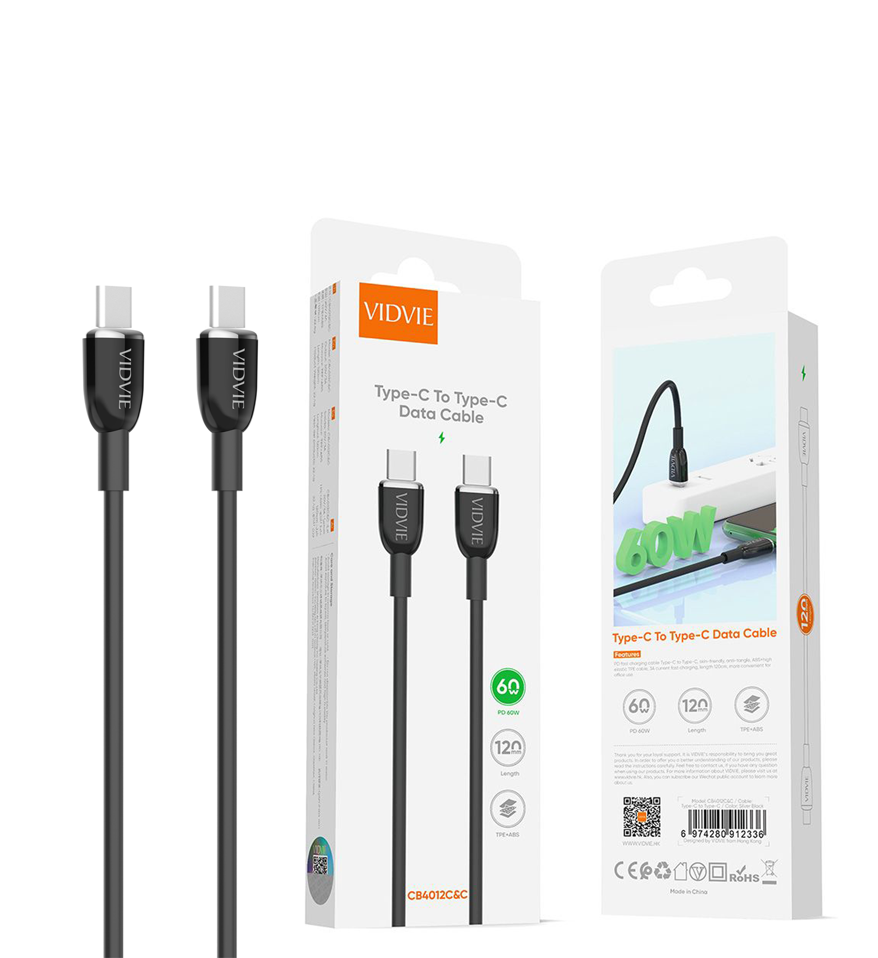 Introducing the VidVie CB4012C&C, the ultimate USB-C to Type-C cable for all your charging needs. With lightning-fast charging capabilities, this cable will power up your mobile phone, tablet, or laptop notebook at unprecedented speeds.