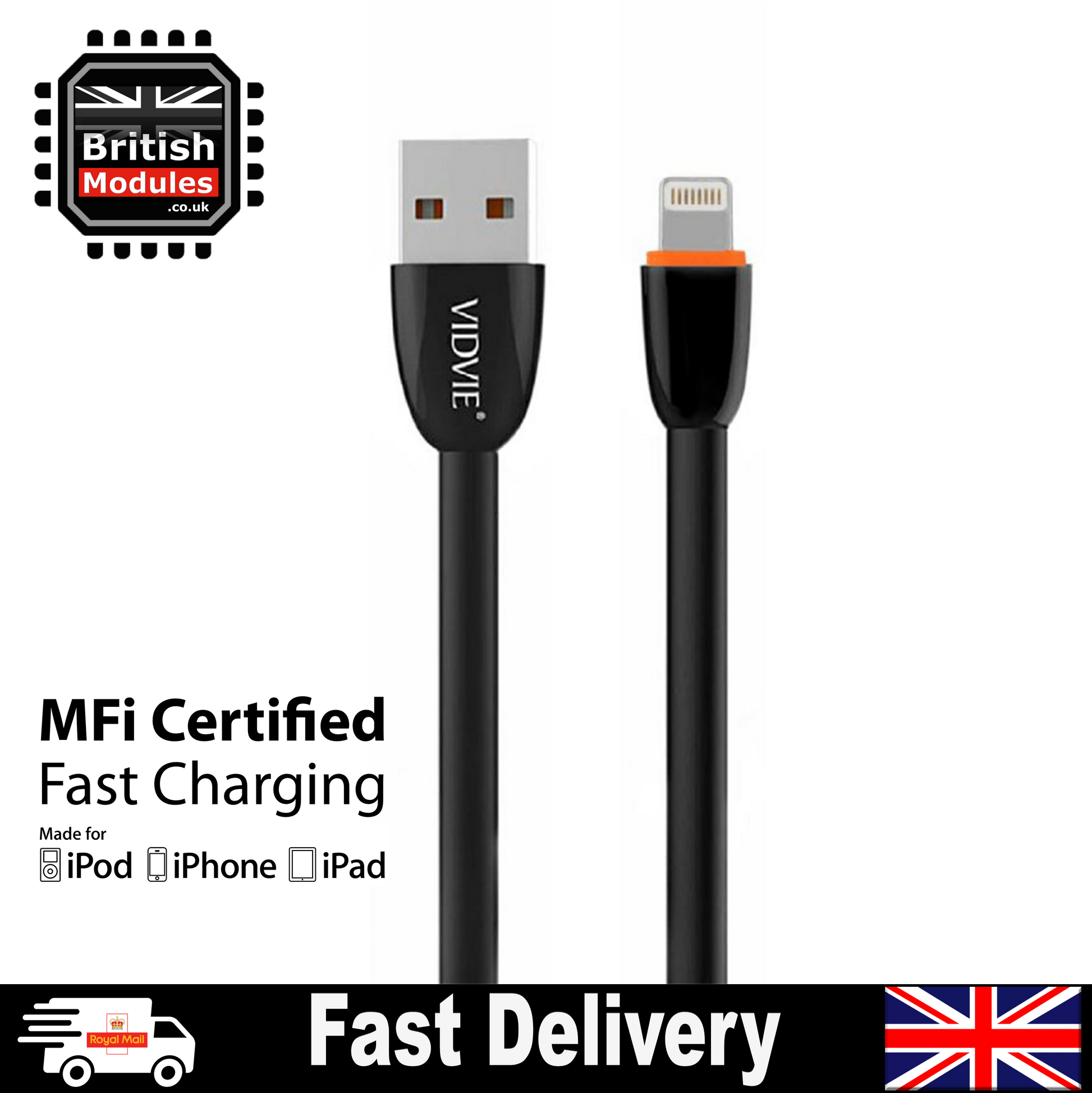 British Modules has delivered yet another super premium cable. The VidVie Lightning Cable is truly unique its core is covered by soft silicone material which is super flexible. As well as soft rubbery feel it has a durable connector which have reinforced joints making them completely indestructible.
