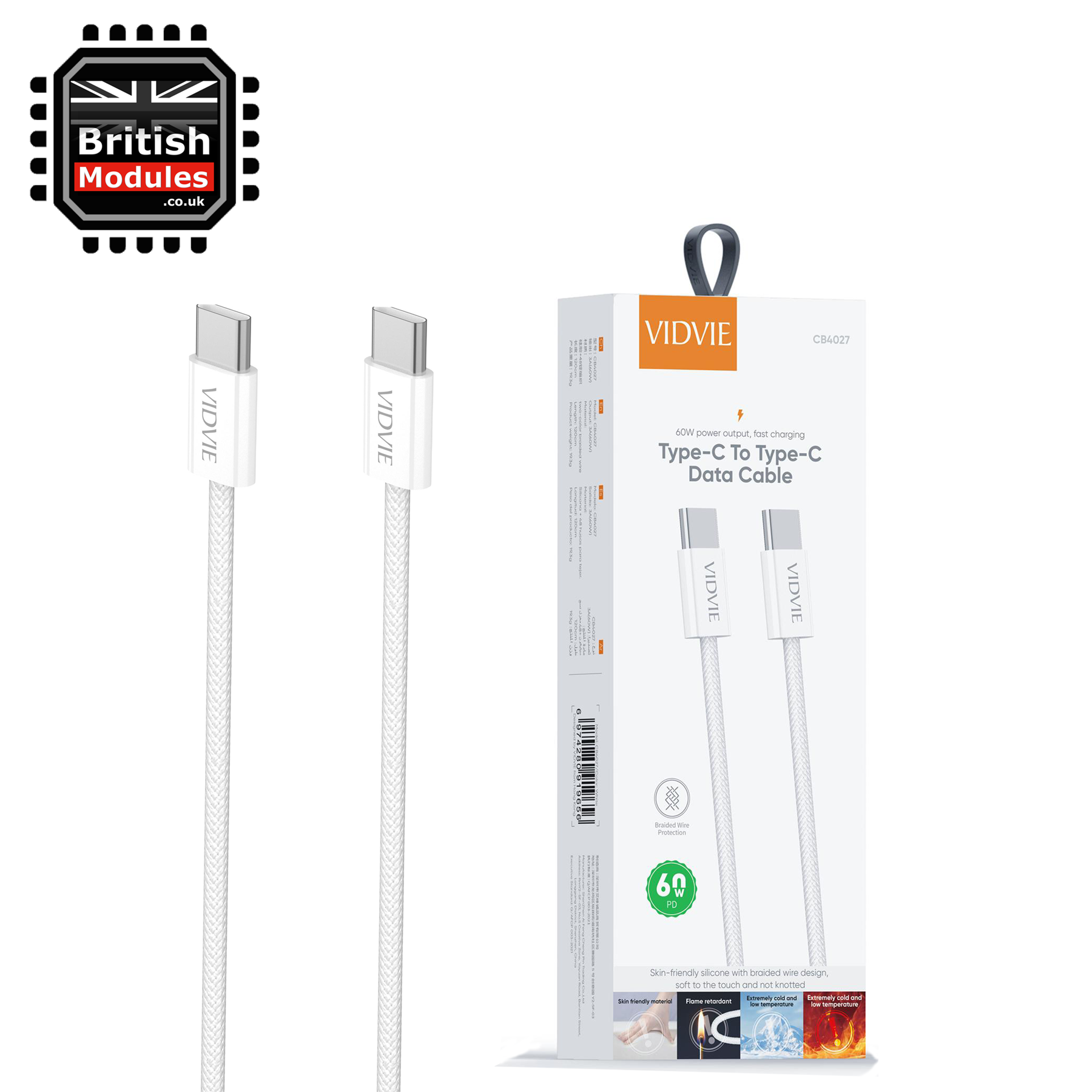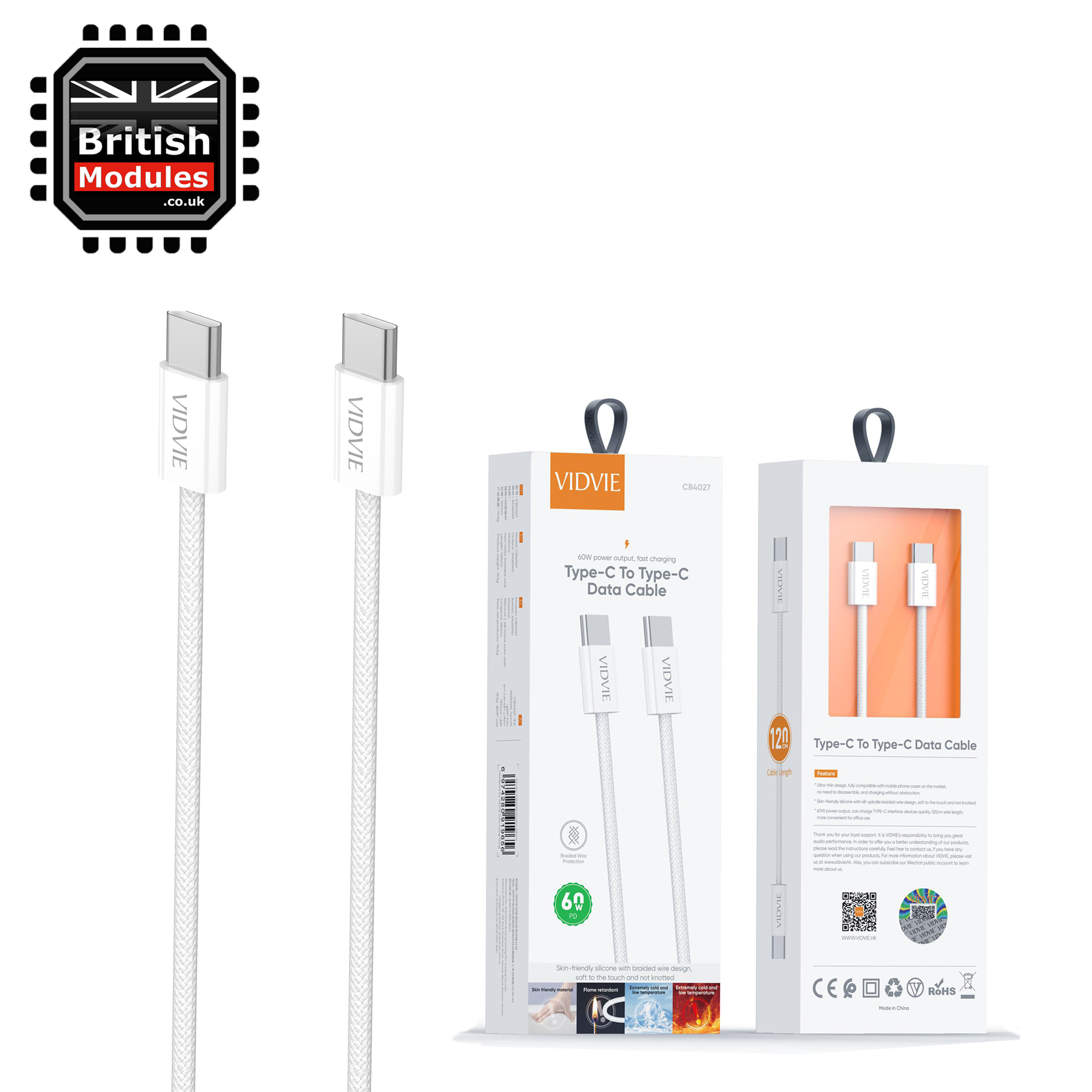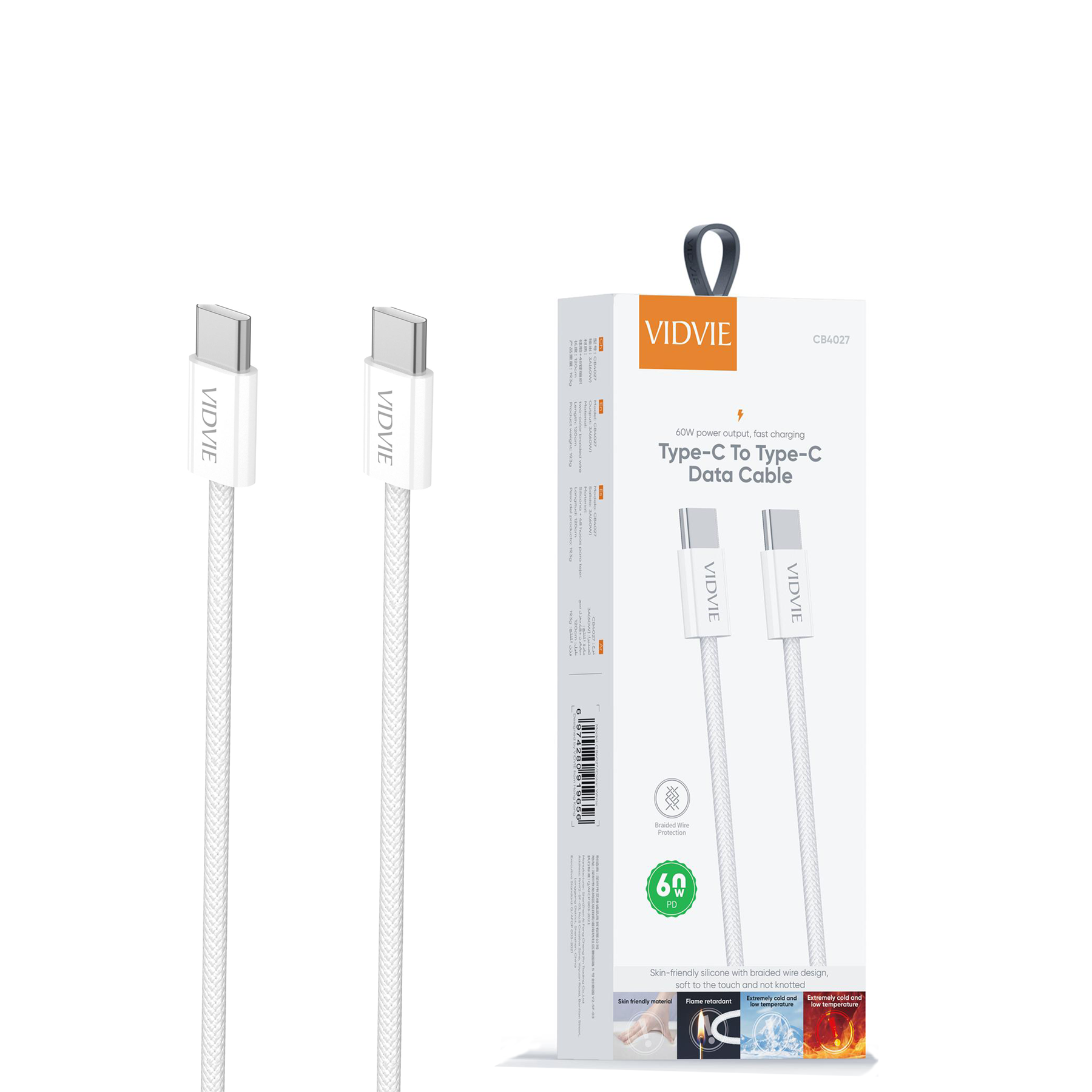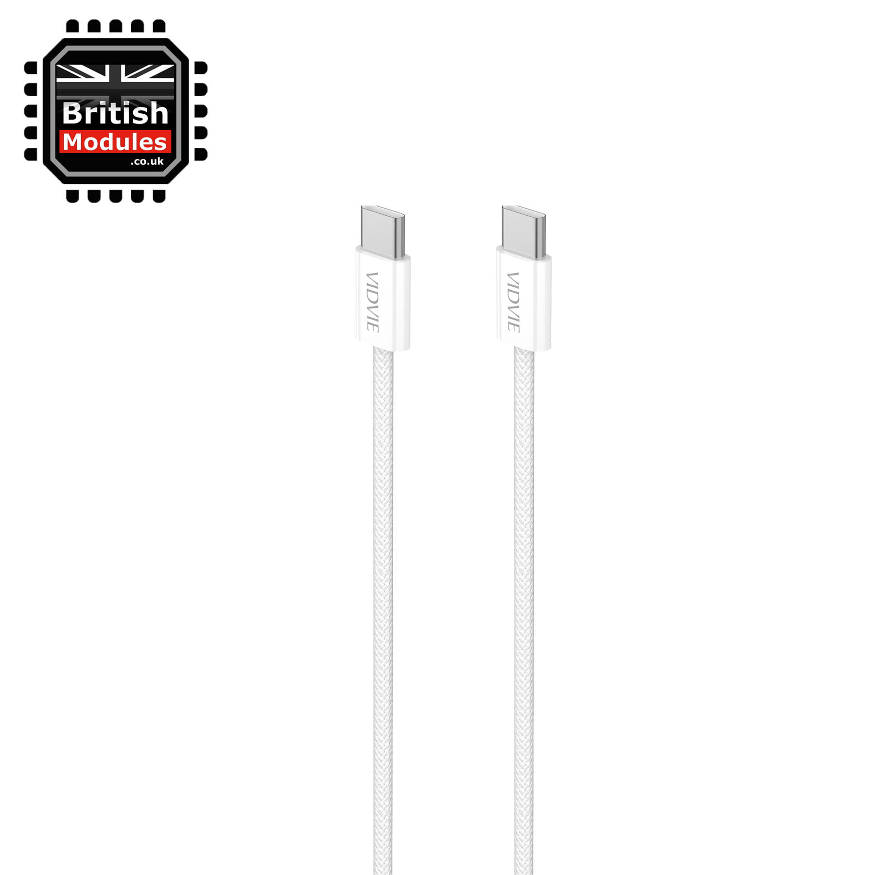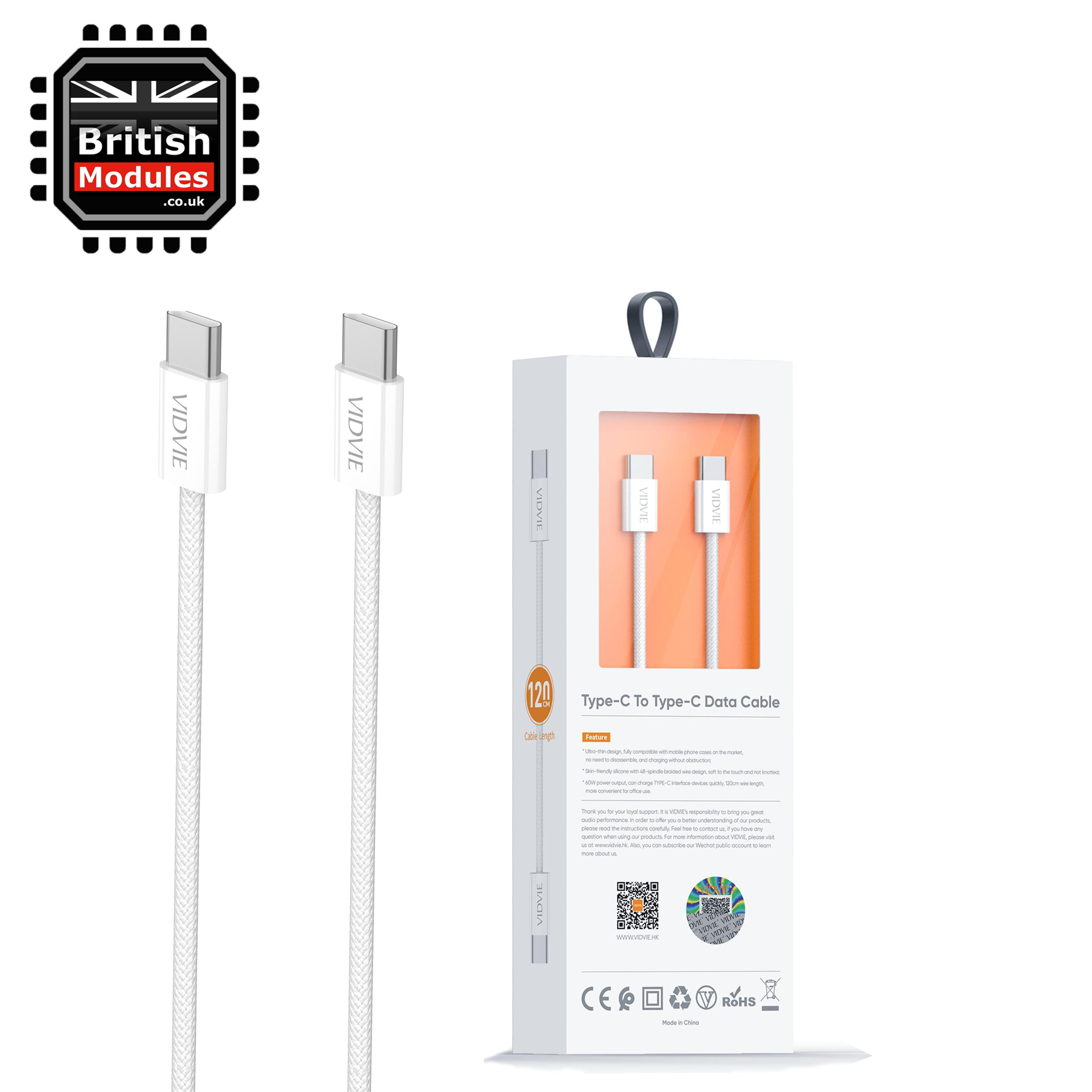 VidVie USB Heavy Duty 1.2M C to USB C Charge Cable Sync 60W Type-C to Type C CB4027 White
